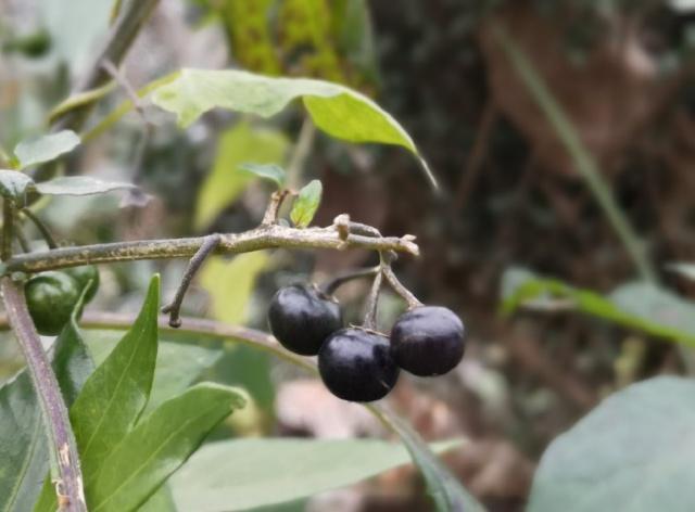 这个是茄科的龙葵。它的果实成熟了就是这样黑色的浆果,如指甲盖大小,同样是茄科,与茄子、番茄的差别怎么这么大? |