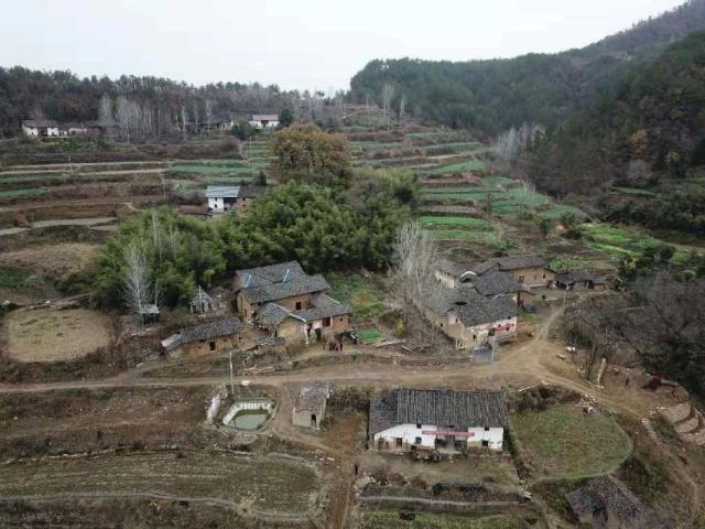 同行的黄忠良老师,还带着航拍器,在天空俯拍,可以看到这三五户的小自然村,背靠着竹林和大树、梯田环绕,如在画中。 |